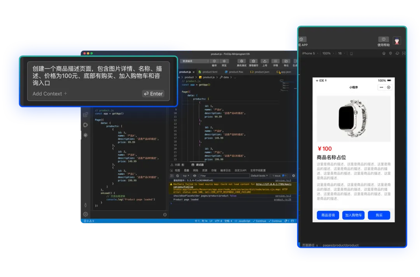 现在,开发者只需在开发工具中输入自然语言描述,如 “创建一个电商小程序的商品列表页面,包含商品图片、名称、价格和购买按钮”,DeepSeek 强大的自然语言处理能力便能迅速理解需求,并自动生成相应的小程序界面代码。这一功能大大降低了小程序开发的门槛,让即使没有深厚编程背景的人员,也能参与到小程序界面的创建工作中。