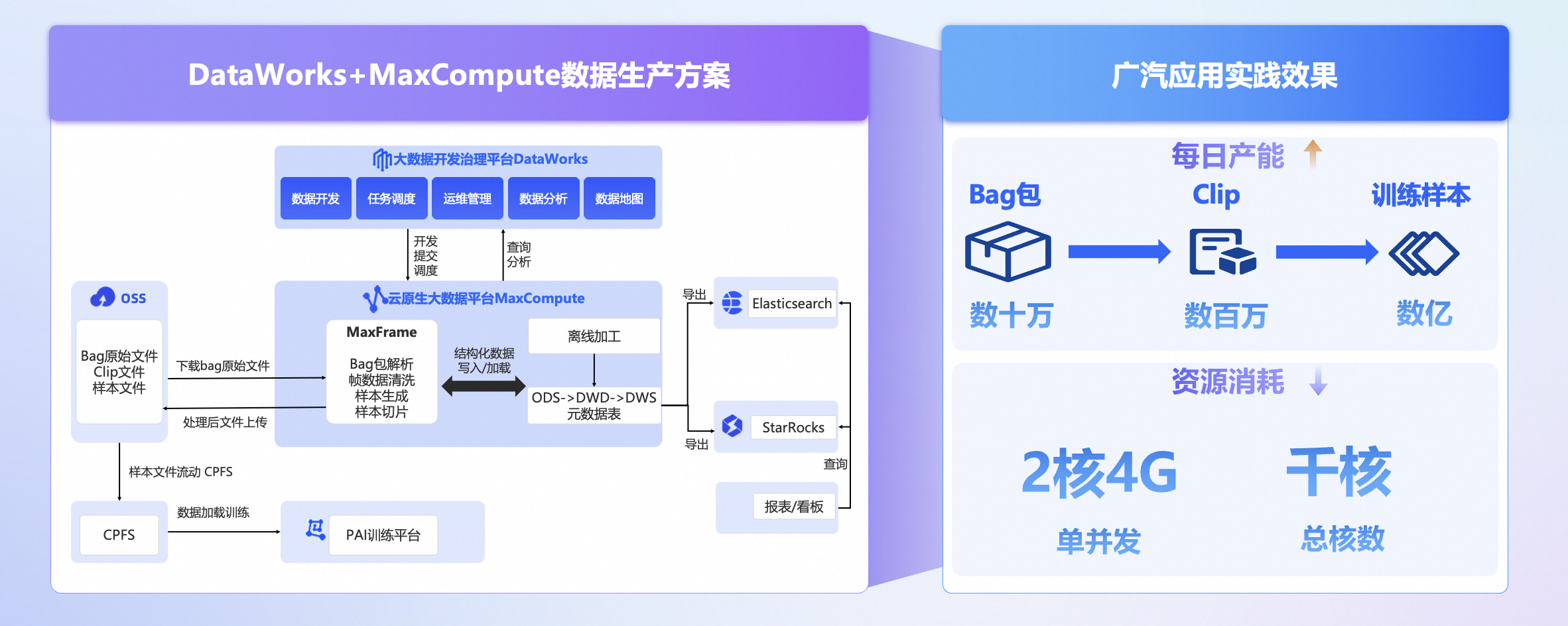数据是燃料,但先要能“点燃”。广汽首先聚焦数据处理环节,引入阿里云 MaxCompute - MaxFrame 分布式计算框架,结合 DataWorks 一站式智能数据开发治理平台实现海量数据全流程自动化管理。