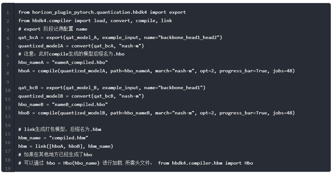 将两个 hbo 文件通过 link 打包生成一个 hbm 模型,示例代码如下: