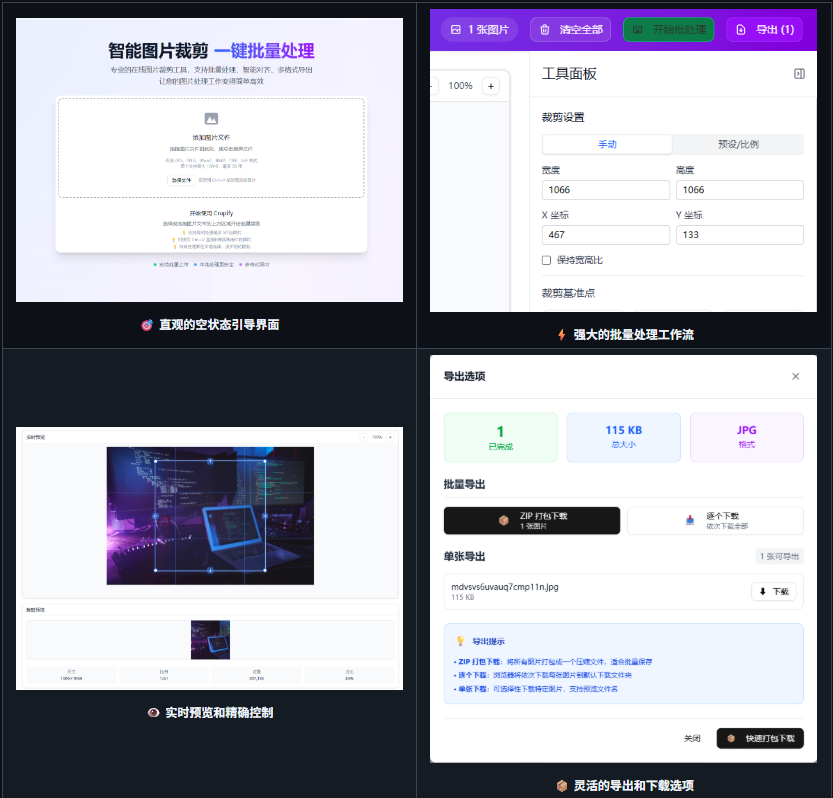 现在已经上线了:国外: https://cropifypro.vercel.app国内: https://cropifypro.netlify.appGithub: https://github.com/yaolifeng0629/Cropify
