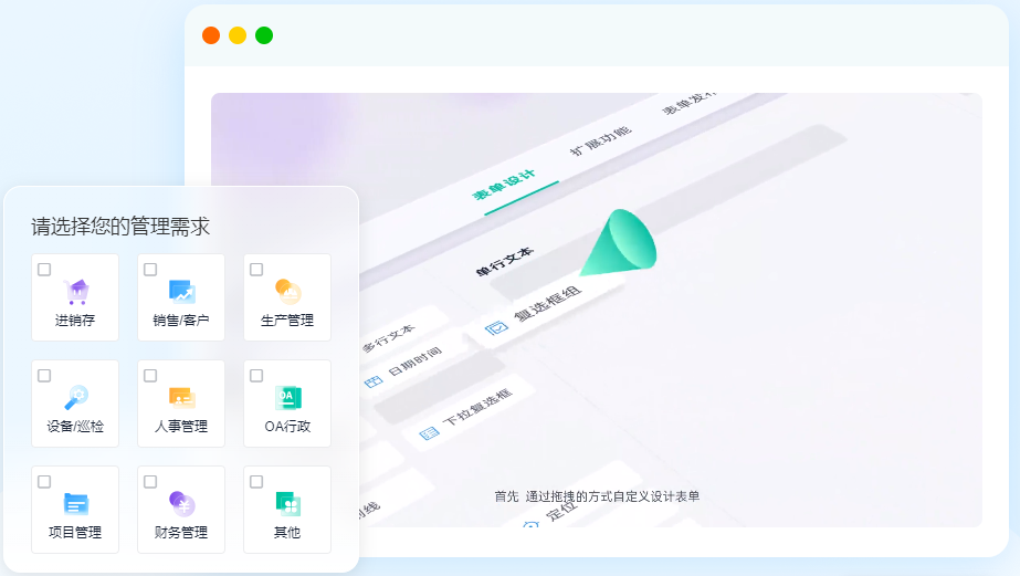可视化建模工具:通过拖拽 UI 组件、定义数据模型、配置业务流程的可视化界面