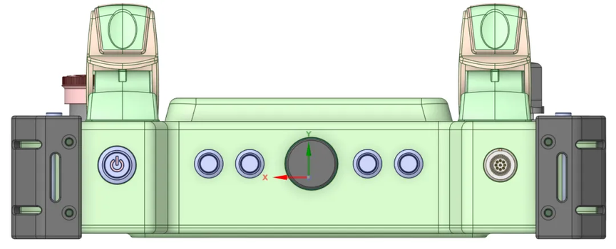 工业电子设备尺寸为 217mm×149mm×97mm,总重 1.5kg,材料以铝合金为主,如图 1 所示: