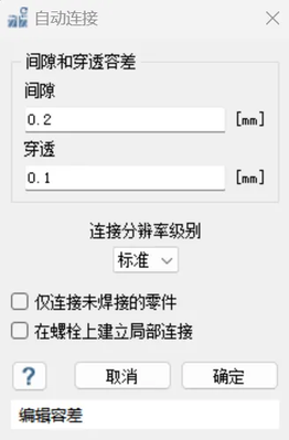 导入几何模型后,对总成数据进行自动绑定接触,间隙和穿透分别设置为 0.2mm 和 0.1,设置如图 3 所示: