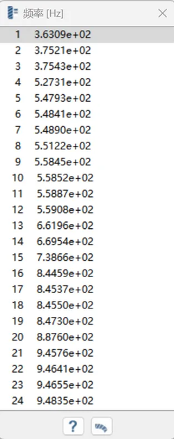 点击求解,不到 5 分钟即完成模态分析,得到 24 阶模态分析结果如图 8。