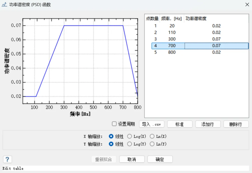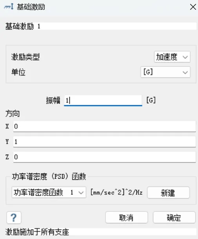 添加 Y 方向加速度激励,选取上述曲线,单位选择重力加速度。
