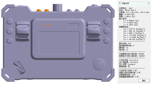 首先导入几何模型,如图 2 所示,从模型装配信息可获知该装配体有 125 个零件。