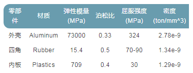 按照所需材料赋予结构三种材料,这里做随机振动分析,实际只需用到线弹性材料参数。