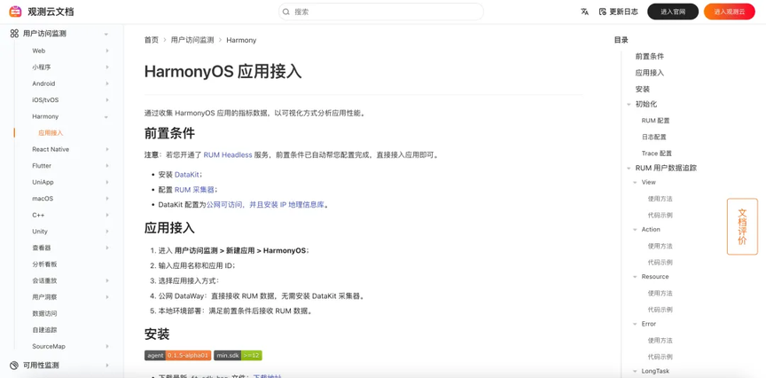 用户访问监测是观测云 HarmonyOS SDK 的核心功能,提供了全方位的用户行为和应用性能监控。通过对页面访问路径、停留时长、常用功能与关键操作的追踪,团队能够更直观地理解用户使用习惯,为信息架构与交互流程优化提供坚实的量化依据。