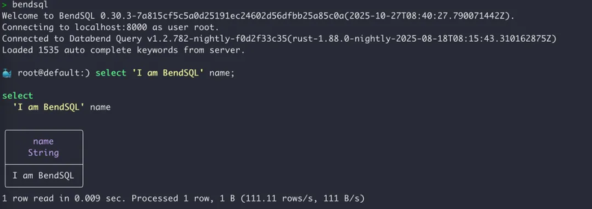 启动后,BendSQL 会在终端显示访问地址,通常是 http://localhost``:<port>。