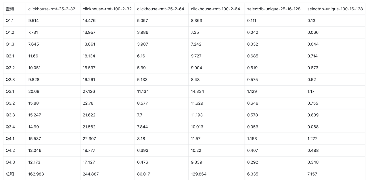 SelectDB (16c 128GB)相比 ClickHouse 32c 128GB(2 replica 每个 replica 16c 64GB)