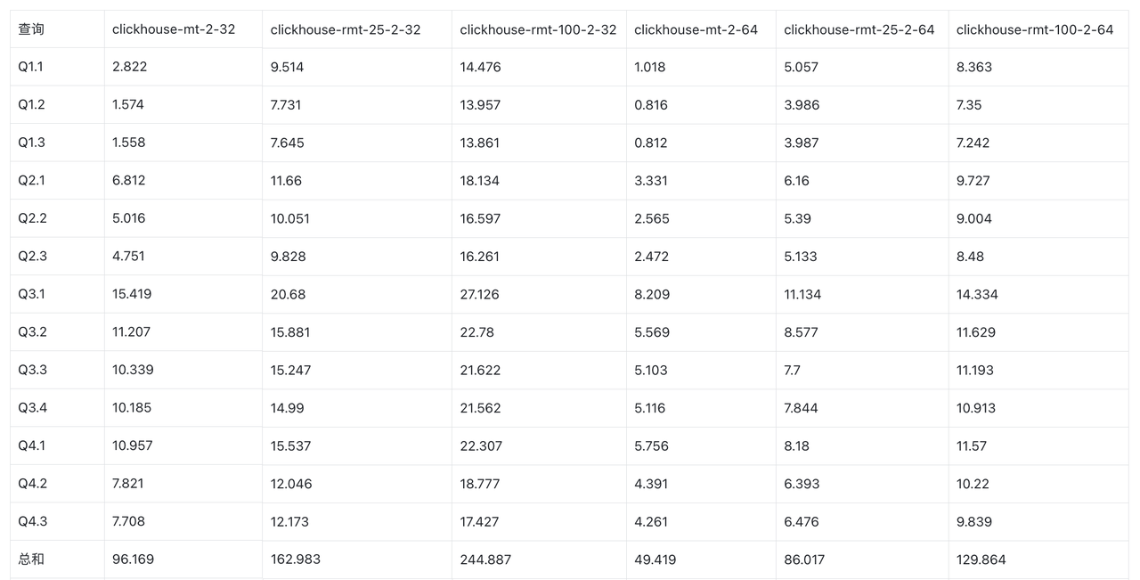 100% 更新比例下,ClickHouse ReplacingMergeTree 相比 MergeTree 性能下降 2.5 倍。