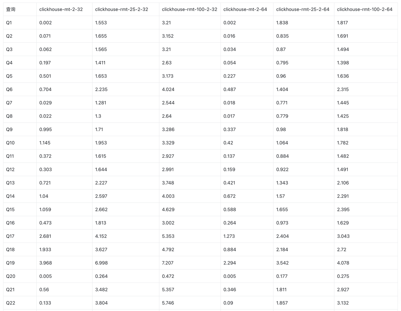 为确保性能对比的合理性,结合 ClickHouse Cloud 与 SelectDB Cloud 套餐配置的差异,制定了如下测试方案:ClickHouse Cloud 采用双副本,单副本分别配置为 8 核 32GB 和 16 核 64GB;SelectDB Cloud 则采用单副本 16 核 128GB 配置。通过该设计,可在整体资源层面分别实现核数对等(16 核)与内存对等(128GB)的横向对比,从而更全面地评估两者在不同资源维度下的性能表现。