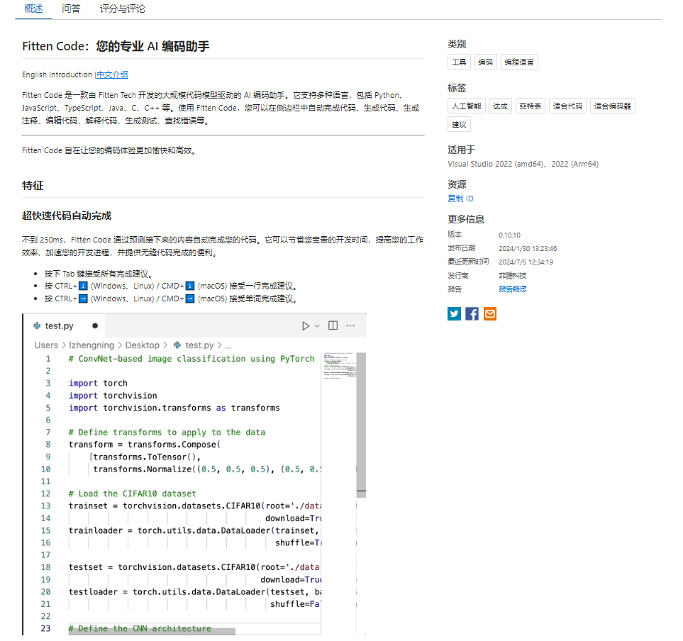 插件市场地址:https://marketplace.visualstudio.com/items?itemName=FittenTech.fittencode