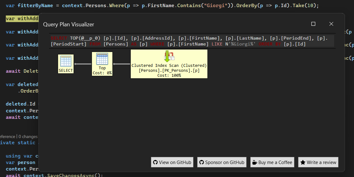 一款可以直接在 Visual Studio 中查看 EF Core 查询计划调试器可视化工具(帮助开发者分析和优化数据库查询性能),目前,该可视化工具支持 SQL Server、PostgreSQL、SQLite、MySQL 和 Oracle。
