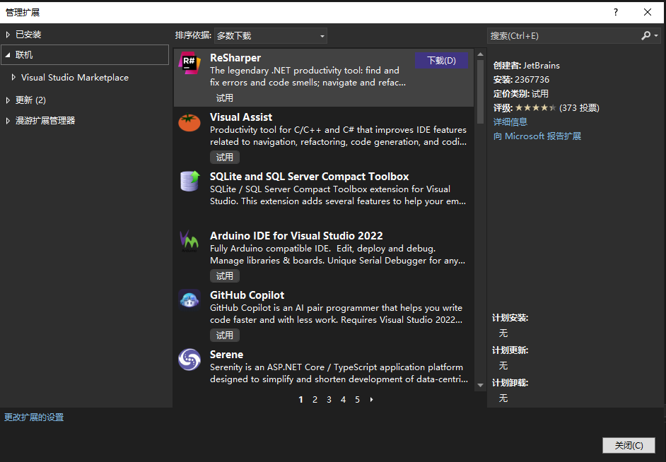插件市场地址:https://marketplace.visualstudio.com/items?itemName=JetBrains.ReSharper