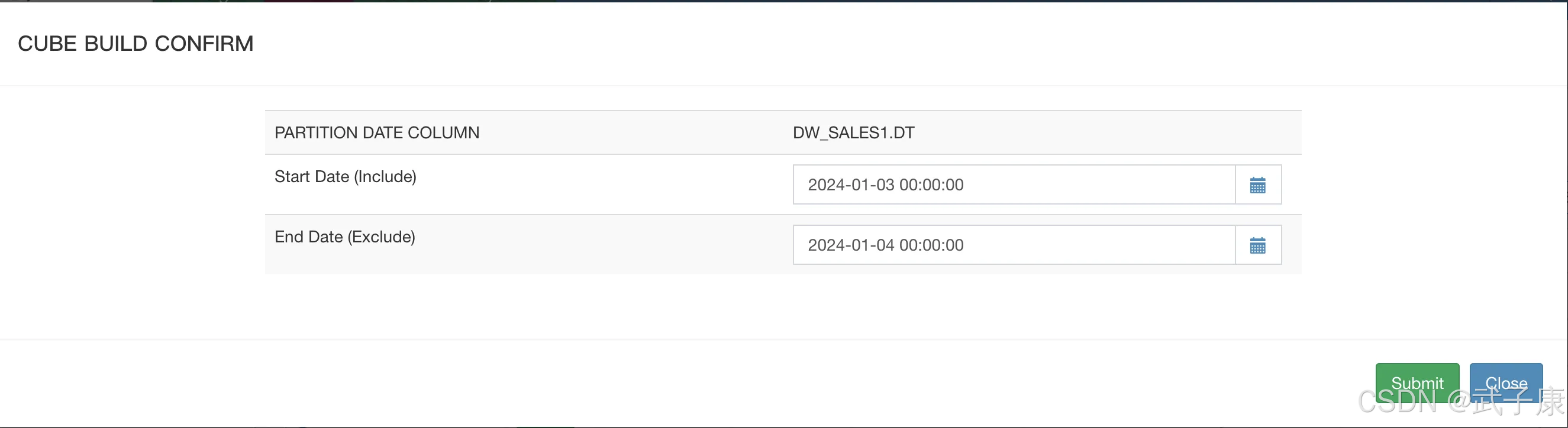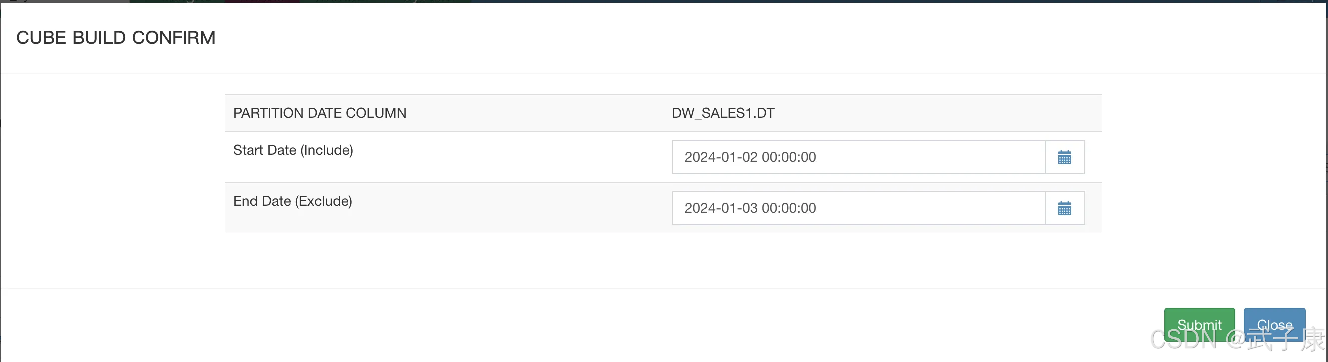 在进行增量构建时,将增量部分的起始时间和结束时间作为增量构建请求的一部分提交给 Kylin 的任务引擎