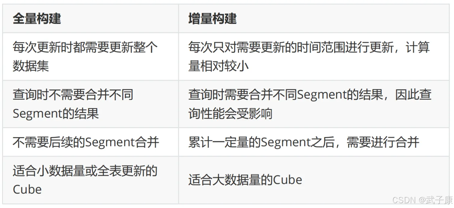 全量构建与增量构建的 Cube 查询的方式对比:全量构建 Cube: