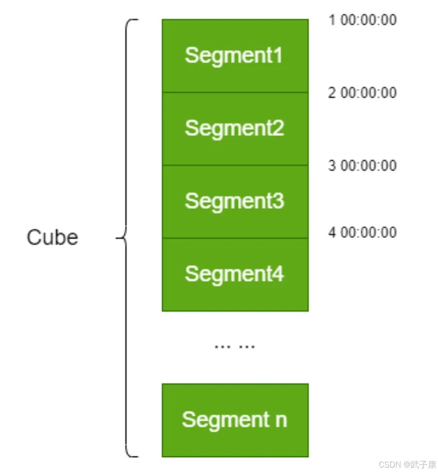 一个 Cube 可能由 1 个或多个 Segment 组成,Segment 是指定时间范围的 Cube,可以理解为 Cube 的分区