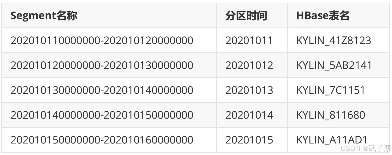 Kylin 将 Cube 划分为多个 Segment(对应就是 HBase 中的一个表)
