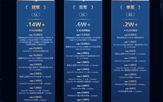 此次赛事奖品对比第二届再次升级,总共包含 130w+奖品,冠军、亚军、季军分别可以获得:14W+、6W+、2W+的奖励,奖品有现金、电脑、辅助软件等奖励,只要你有足够的创造力、想象力,即可有机会获得这些奖品。