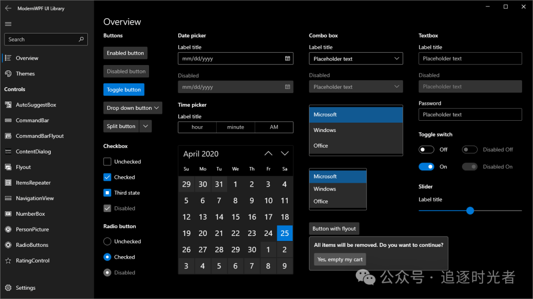 ModernWpf 是一个开源项目,它为 WPF 提供了一组现代化的控件和主题,使开发人员能够创建具有现代外观的桌面应用程序。