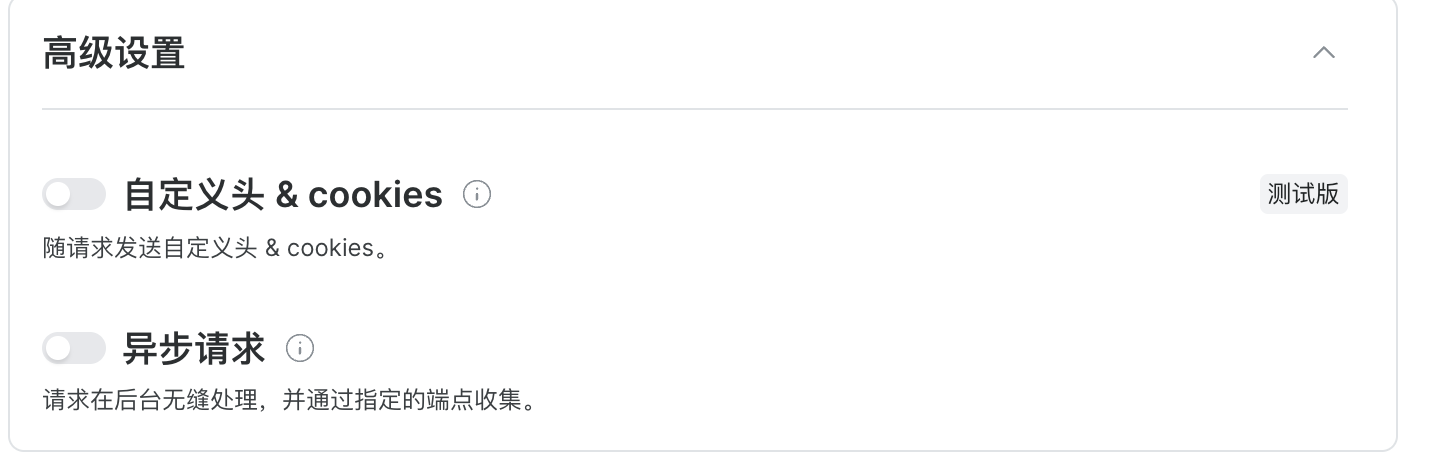 接着修改“通道名称”,添加“通道描述”,也可进行高级设置(自定义头 &cookies)、异步请求,设置完成之后,点击下面按钮“添加 API”