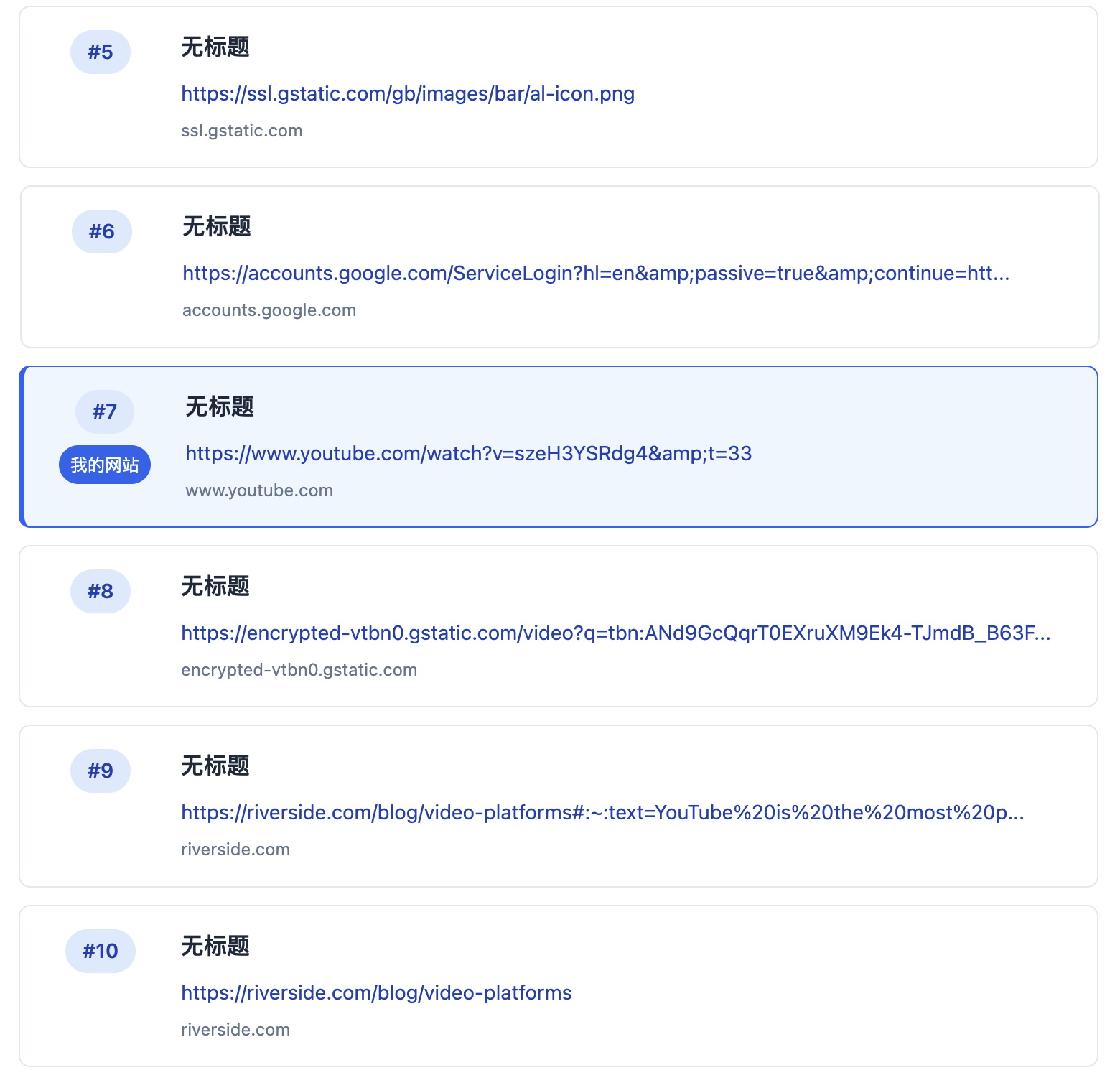 查看一下前 10 的 URL 有哪些网站