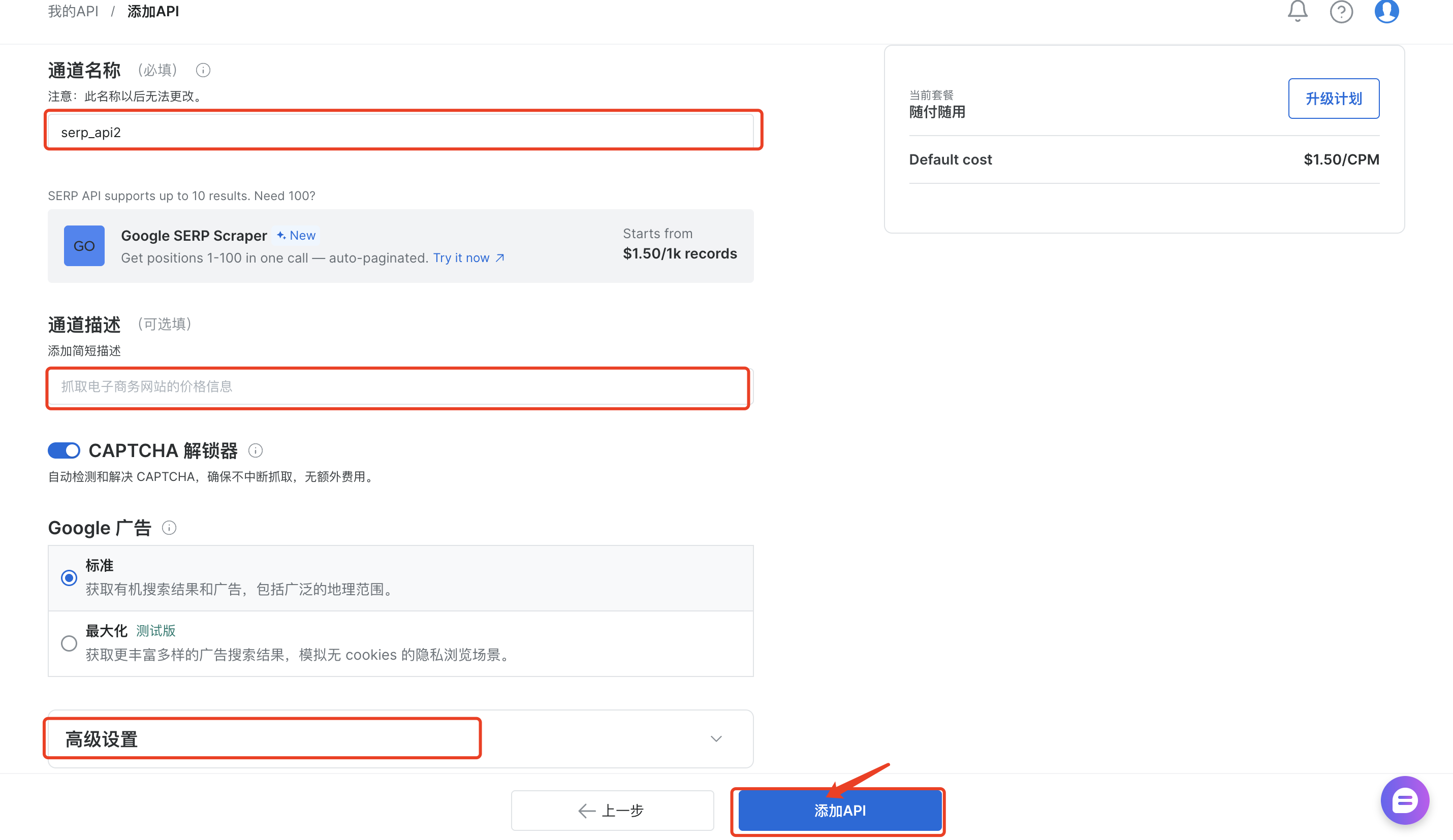 (1)创建 SERP API