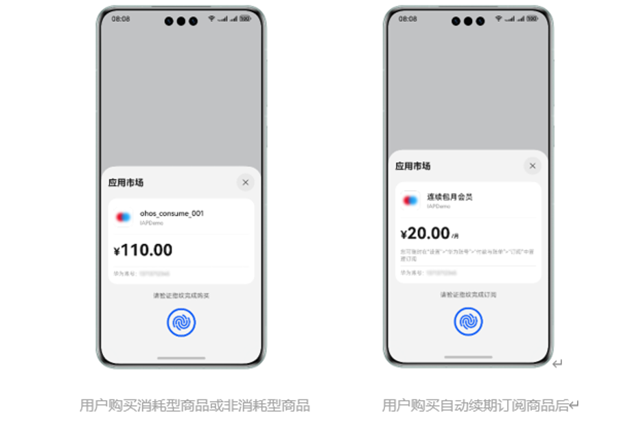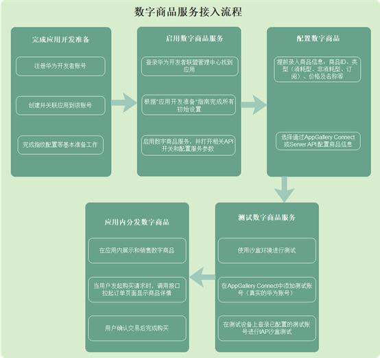 开发者可通过接入和使用 IAP 系统级 API 以及应用市场 Server 能力,快速启动数字商品交易流程,实现在应用内销售数字商品的功能和场景。通过应用内的数字商品交易,用户可以在开发者的应用内购买各种类型的数字商品,包括消耗型商品、非消耗型商品和自动续期订阅商品、非续期订阅商品等。