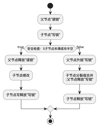 乐观(Optimistic Crabbing): 无锁下潜,版本号对比 发现不安全时(版本更新) 写:回退并加锁重试 读:回根重来