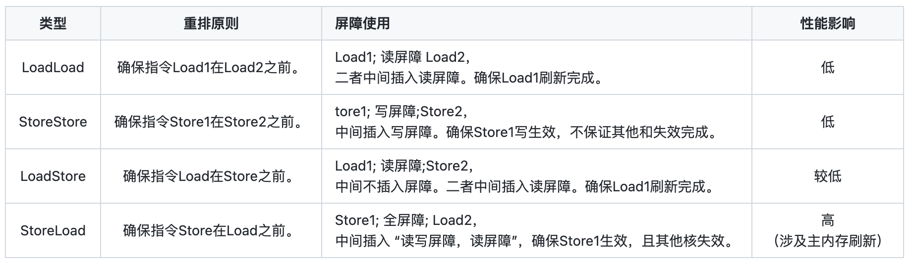 内存屏障命令,通过强制“等待缓存刷新完成”,保证有序性和可见性,代价性能延迟 20-50 ns。