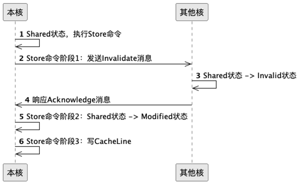 写方增加 Store Buffer(写缓冲): 位于 L1Cache 和 L2Cache 之间,用于写 Acknowledge 过程临时缓存,cpu 继续执行其他指令,收到 Acknowledge 后,由 StoreBuffer 写入 L2Cache