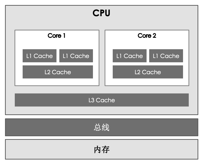 缓解 CPU 计算和读写速度不匹配问题,引入多级高速缓存(SRAM),各级缓存之间及同主内存之间均以 CacheLine(缓存行,一般 64 字节)为最小单位交换数据。