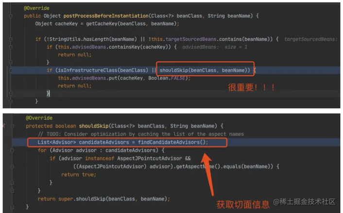 进⼊ buildAspectJAdvisors(),这个⽅法应该有印象,就是前⾯将切⾯信息放⼊缓存 advisorsCache 中,现在这⾥ 就是要获取缓存。