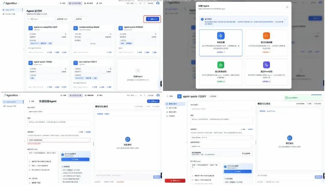 快速创建:访问控制台( https://functionai.console.aliyun.com/cn-hangzhou/agent/explore ),60 秒创建你的第一个 Agent