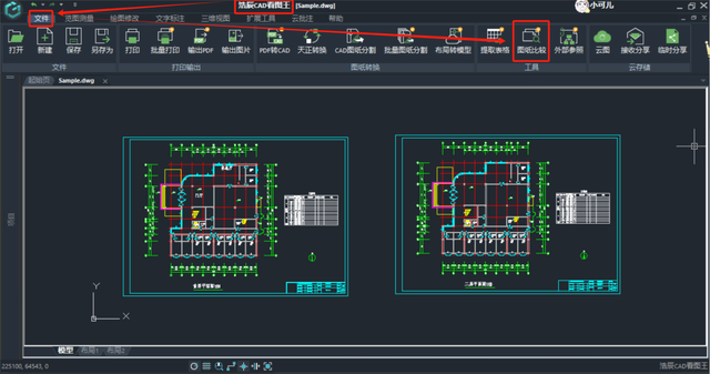 2、点击【文件】菜单栏中的【图纸比较】工具;