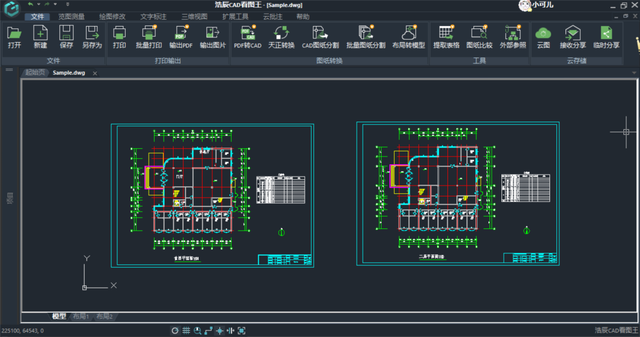 1、打开需要进行图纸对比的 CAD 图纸,如图可以看到有两张平面图,分别为首层平面图和二层平面图;