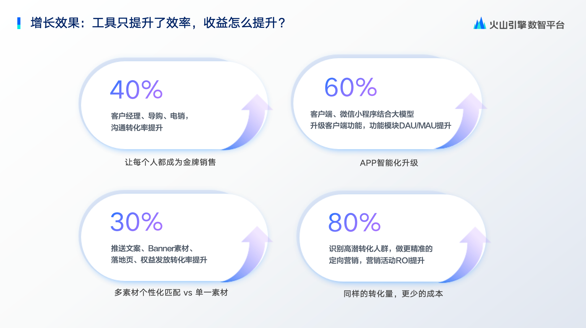 聊完增长效率,再来看看增长效果。效率提升了,企业的收益如何提升呢?这里分享四个典型的落地场景: