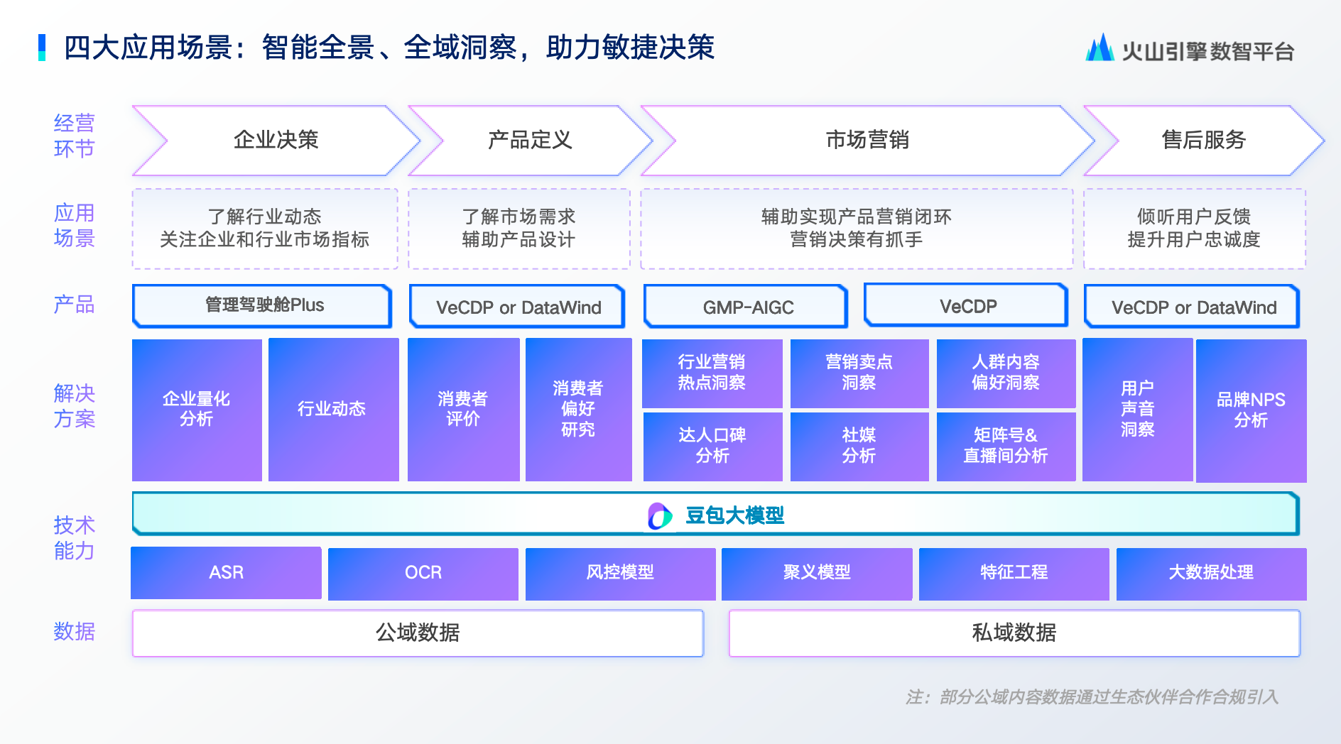 聊完案例和落地场景,我们来看看支撑这些方案落地的核心产品能力和技术。这里展示的是我们完整的解决方案架构图,重点突出了其核心关键能力。