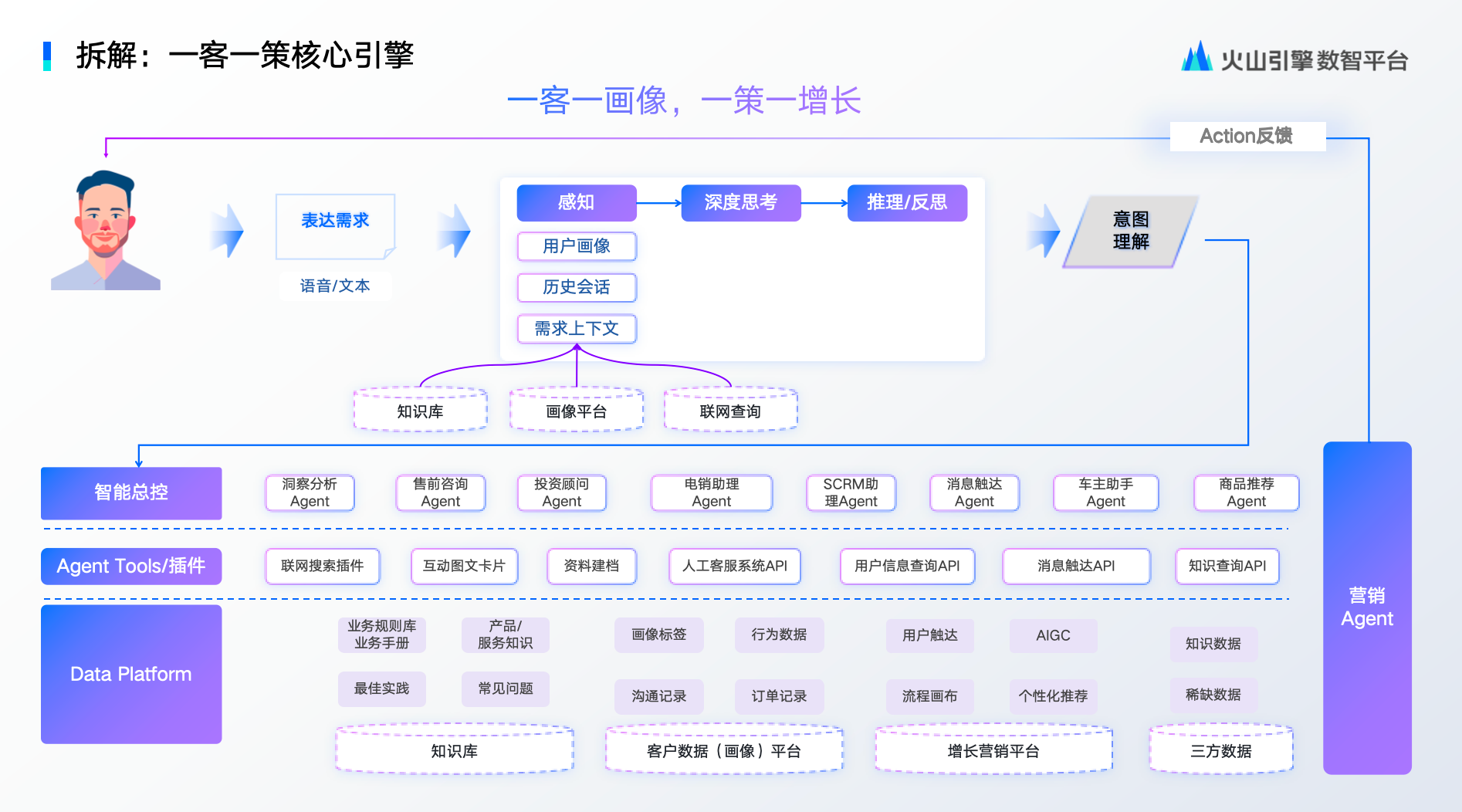 本文为火山引擎数据产品总监刘峰的演讲分享,介绍了在过去的半年中,火山引擎 Data Agent 在智能营销 Agent 领域的一些新思考、新能力以及落地实践。
