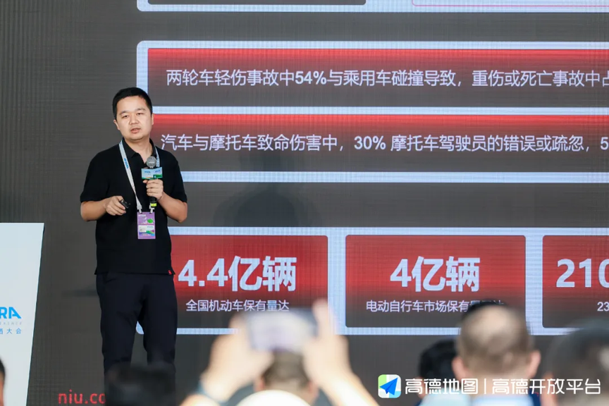 小牛电动车智能平台总监冯龙,进行大会主题《端云协同的两轮车安全新范式》的宣讲