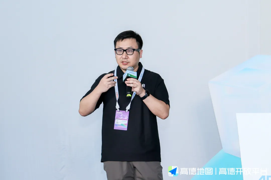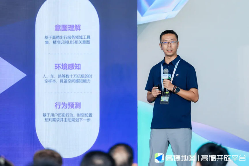 高德开放平台产品总监杜康进行大会主题《空间智能 AI 时代的企业 LBS 智能中枢》的宣讲
