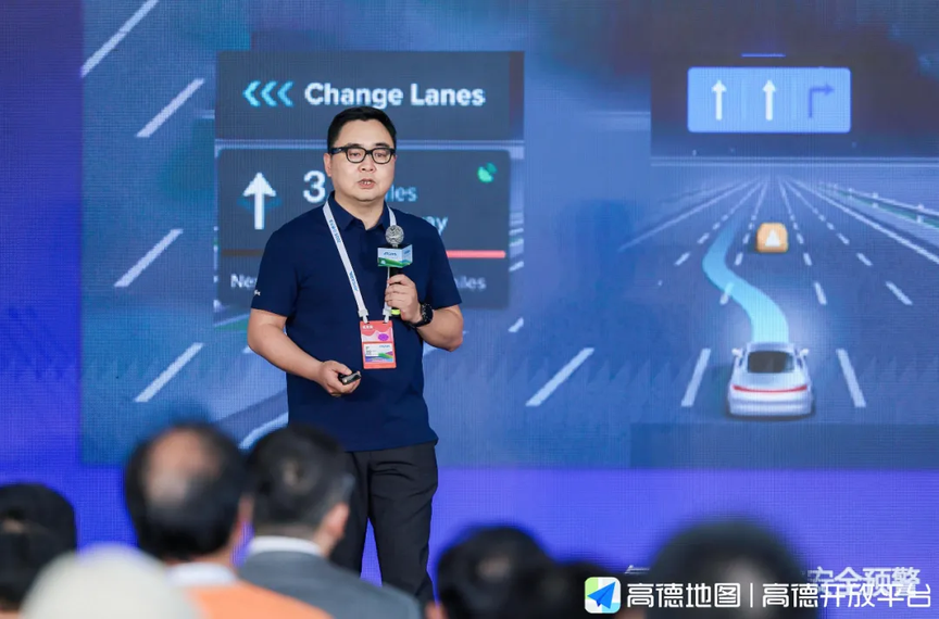高德开放平台总经理崔勇进行大会主题《AMAP Al inside -让空间智能走进 360 行》的宣讲