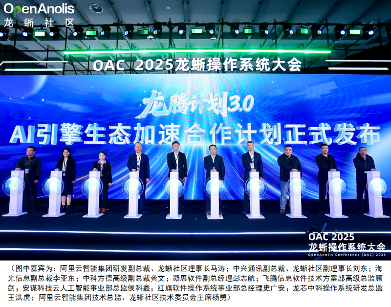 会上,龙腾计划 3.0——AI 引擎生态加速合作计划正式发布,标志着龙蜥社区在推动操作系统与 AI 技术创新融合、以及利用 AI 驱动上下游产业合作变革方面迈出了重要的一步。该计划将聚合社区超过 1000 家产学研头部技术力量和资源,通过开源和商业双轮驱动模式,共同构建一个开放且具有创新活力的 AI 引擎生态系统。