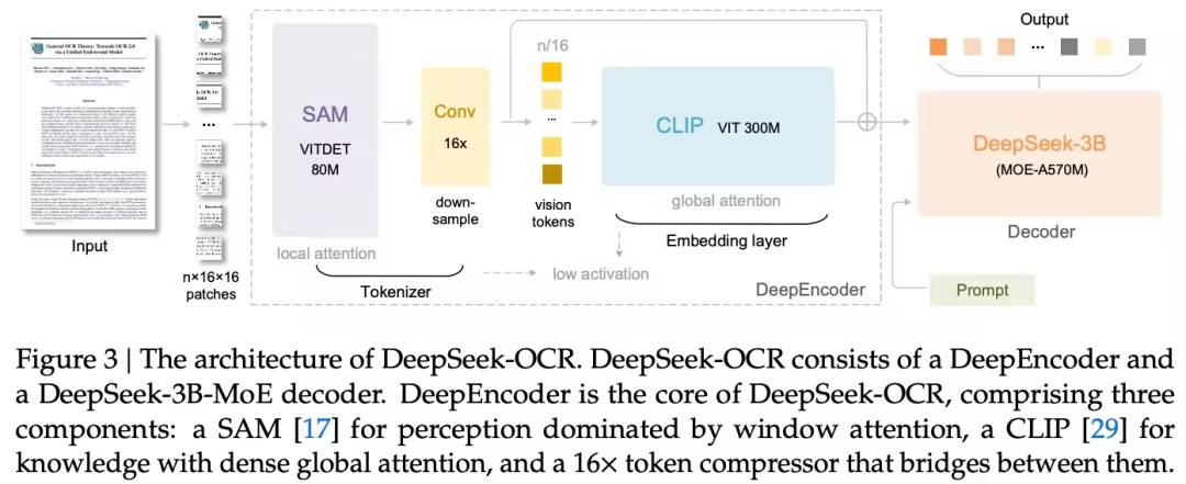 因此,DeepSeek-OCR 采用 DeepSeek-3B-MoE(激活参数约 570M)作为解码器。