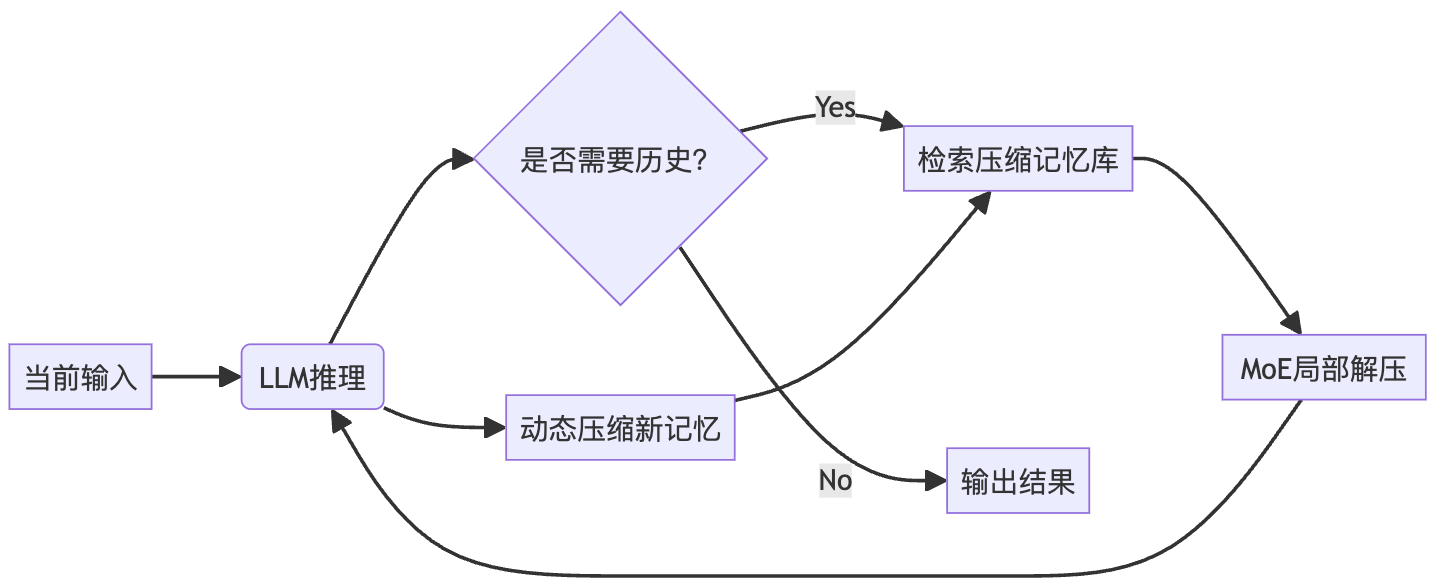 我们知道,传统的记忆框架,大都是个闭环记忆系统:每次交互后,新记忆被压缩 C(一般是向量压缩 RAG、或者一些所谓的 NN 模型压缩比如 MemGen)并分级存储,供未来检索。