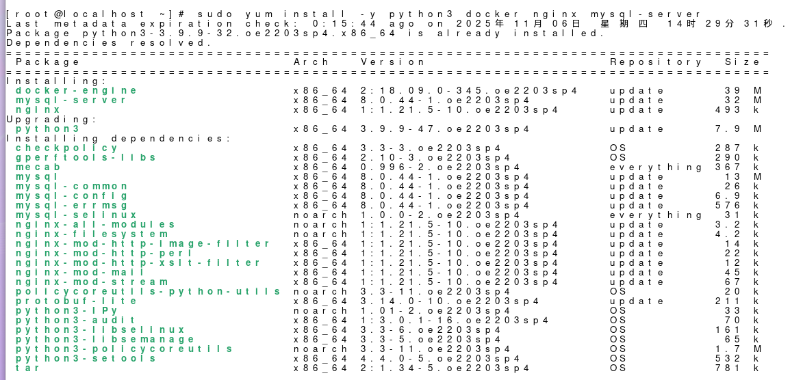 整个过程中,openEuler 展现出优秀的软件生态支持,所有组件都能从官方仓库直接获取,无需额外配置。MySQL 服务运行稳定,响应迅速,完全满足企业级应用的基础需求。特别值得一提的是,openEuler 的内核优化让数据库在默认配置下就能获得良好的性能表现,这大大降低了运维复杂度。