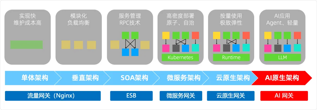 当 AI 应用出现后,伴随着 AI 原生架构的发展,AI 网关也顺势而生了。