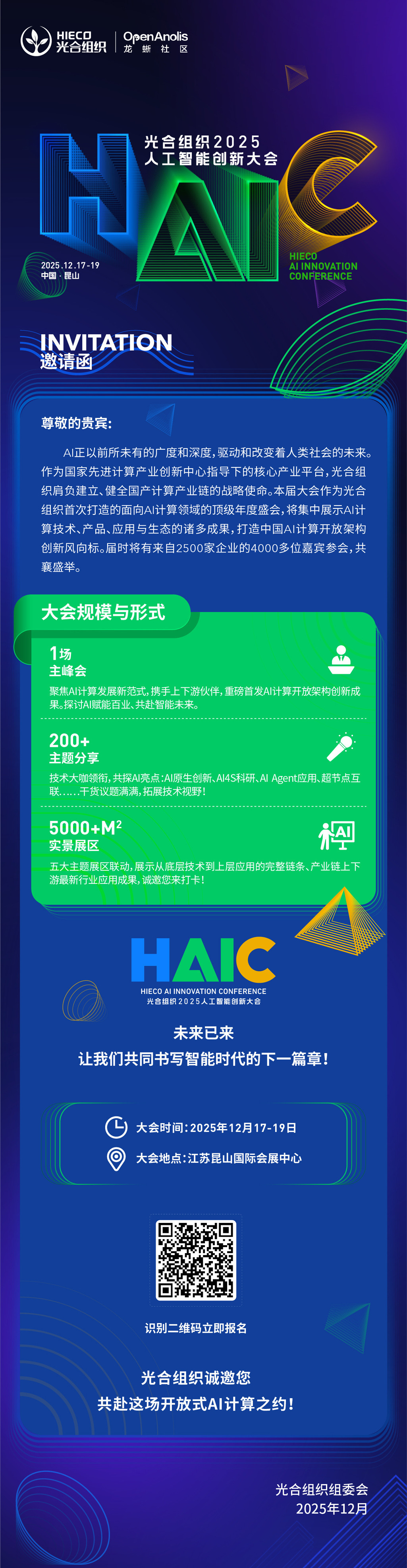 欢迎大家报名参加在中国昆山举办光合组织 2025 人工智能创新大会,该大会将集中展示 AI 计算技术、产品、应用与生态的诸多成果。