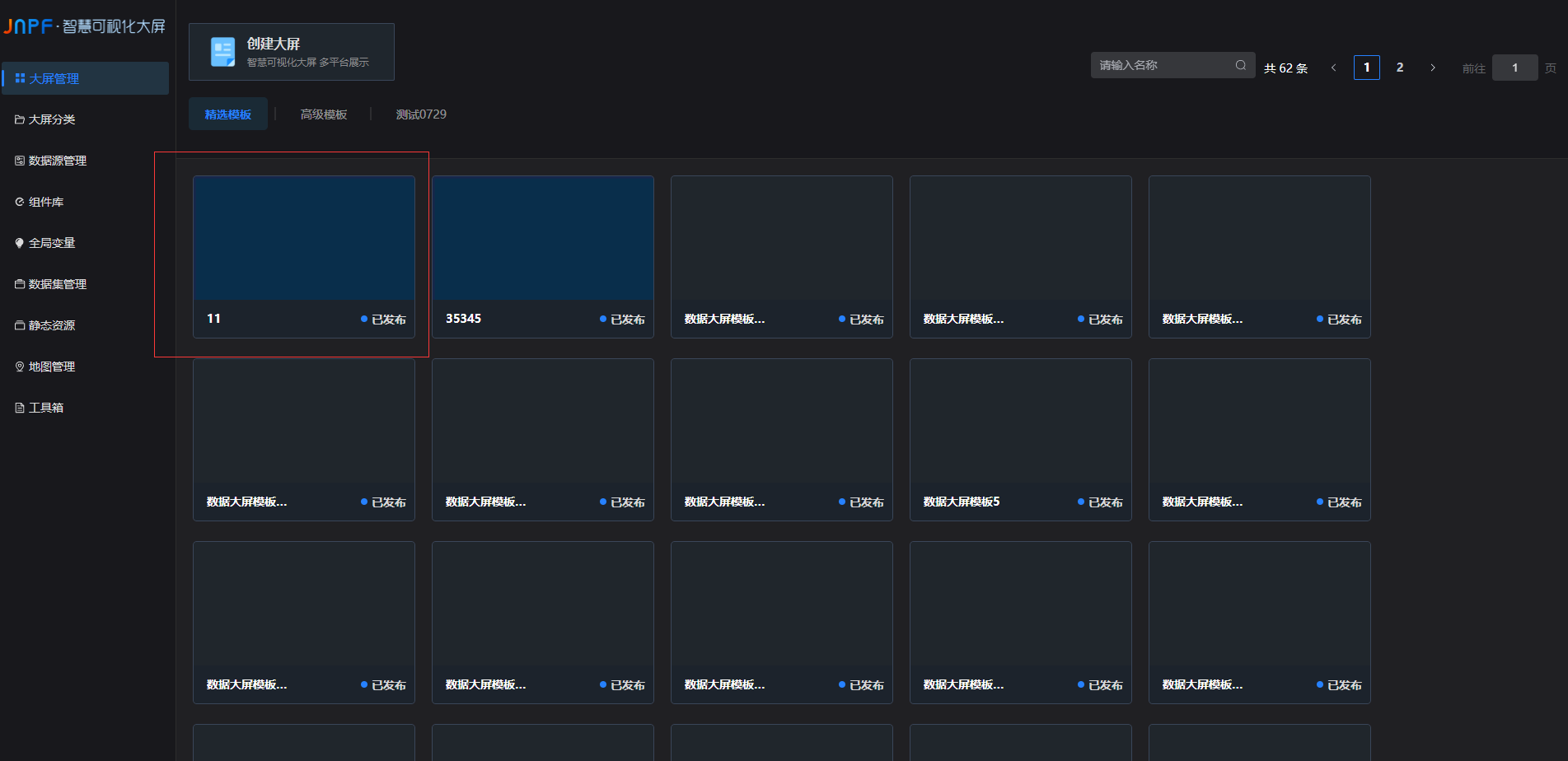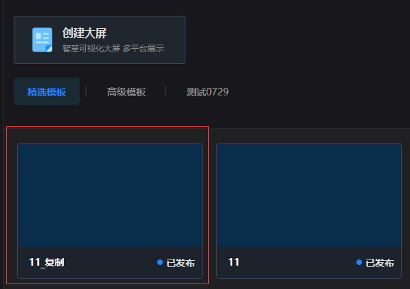 进入大屏管理页面,展示分类下的大屏